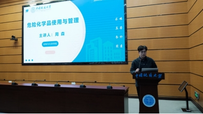 图4 材料与化学学院周森副教授作《危险化学品使用与管理》专题报告