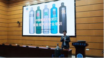 图5 武汉中鑫瑞远气体有限公司销售总监彭李强讲解实验室气体安全知识