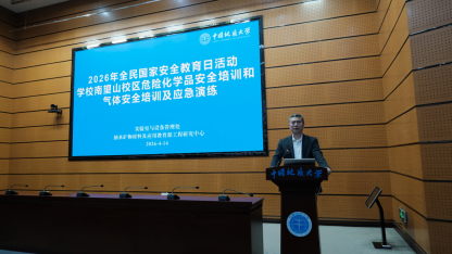 (通讯员 左小超 摄影 韩来宝)为深入贯彻落实总体国家安全观,切实提升师生实验室安全风险防范与应急处置能力,2026年4月14日上午,由实验室与设备管理处主办、纳米矿物材料及应用教育部工程研究中心承办的“2026年全民国家安全教育日活动——危险化学品安全培训及气体安全培训与应急演练”在南望山校区东区教学综合楼A0113会议室顺利举行。本次活动由纳米矿物材料及应用教育部工程研究中心左小超老师主持。